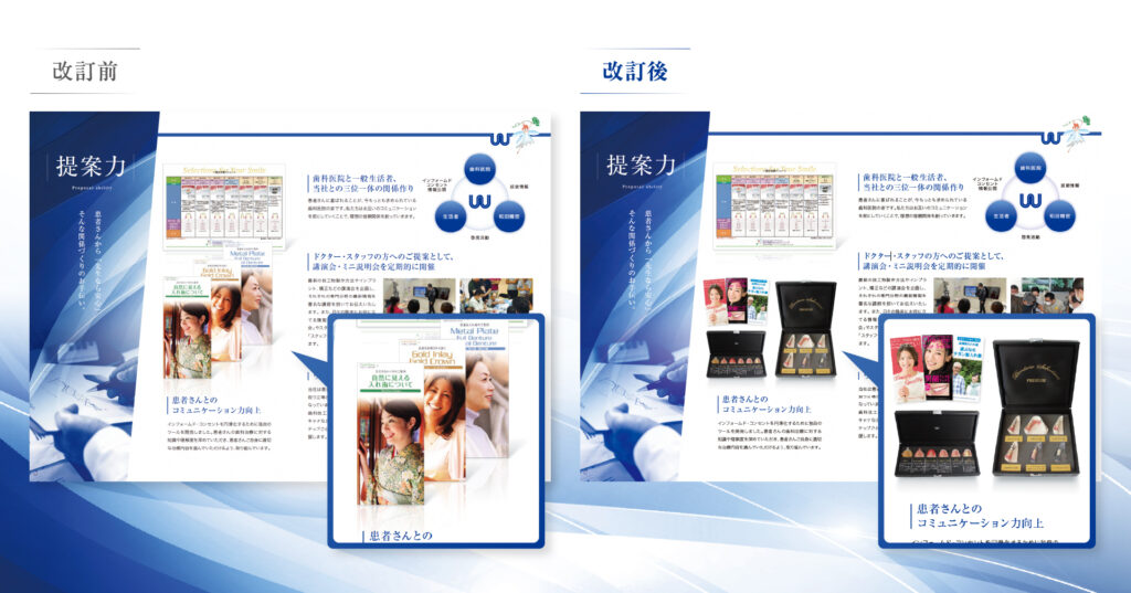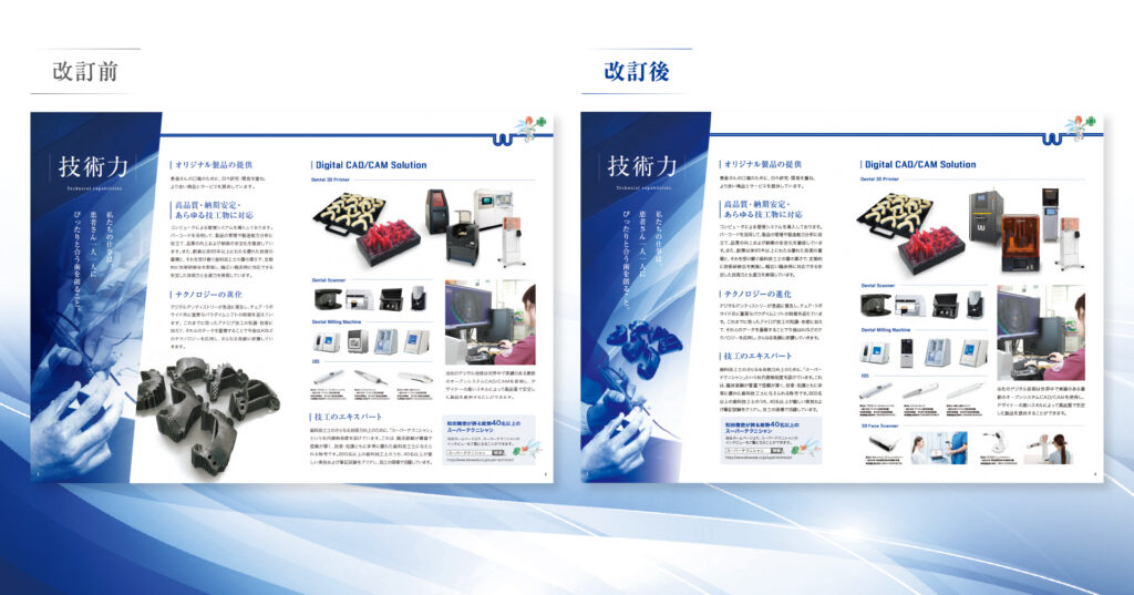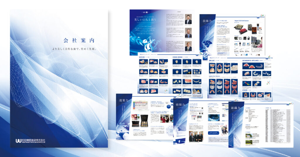 今回は、歯科関連製品メーカー様の、会社案内カタログリニューアル事例をご紹介しました。