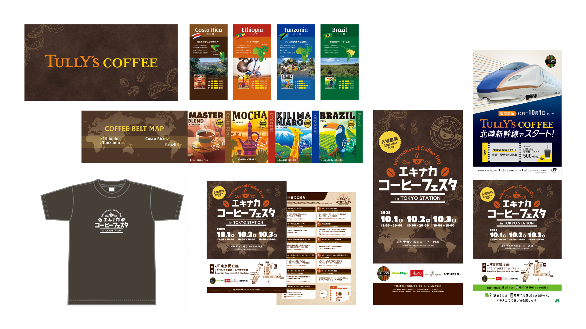 東京駅で開催されるコーヒーイベントに向け、告知用バナーから当日のブースデザイン、チラシ、Tシャツ、サイネージ、タペストリーまで、ワンストップでデザイン制作を担当しました。
