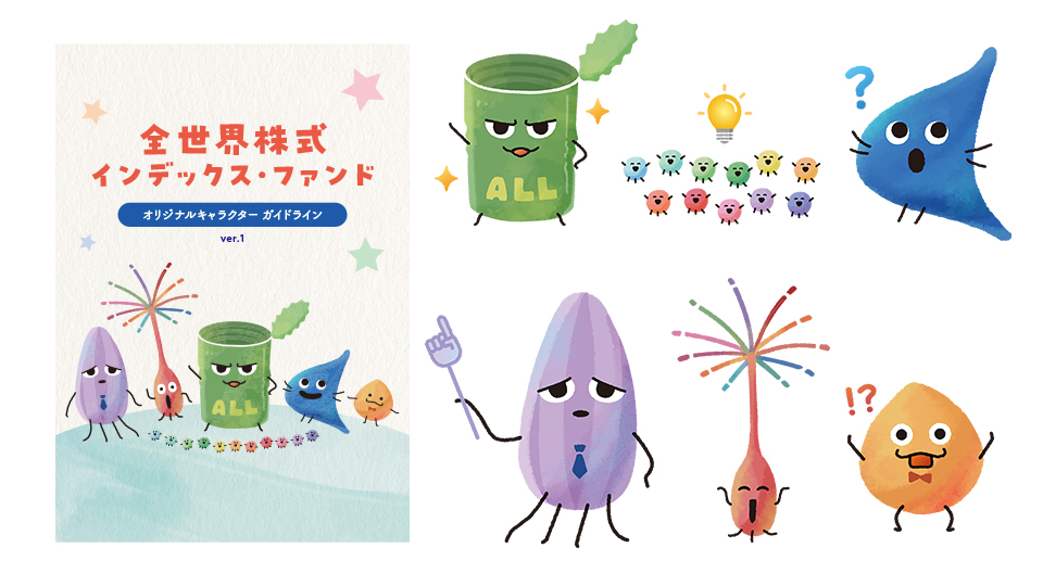 2026.03.04 Catalog 大和アセットマネジメント株式会社様 【ロゴ・イラスト】金融商品のオリジナルキャラクター制作_大和アセットマネジメント株式会社様 制作サービスロゴ・イラスト業界ITエリア東京 カタログ・パンフレット制作の概要紹介 投資信託のオリジナルキャラクターを制作いたしました。色や形、大きさが様々な植物のタネをモチーフにしております。愛着を感じさせる可愛らしさに加えて、商品性も想起させるようなキャラクターを目指しました。 カタログ・パンフレット制作のポイント オルカン(全世界株式)にちなんだ「ALL缶」に、多国籍・多様性を表現した個性豊かな種たちが集まる設定です。 一覧へ戻る