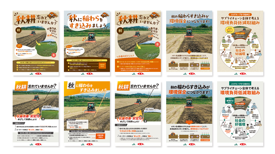 稲作の生産者向けに、秋耕(稲わらの秋すき込み)を促進するためのチラシを制作いたしました。