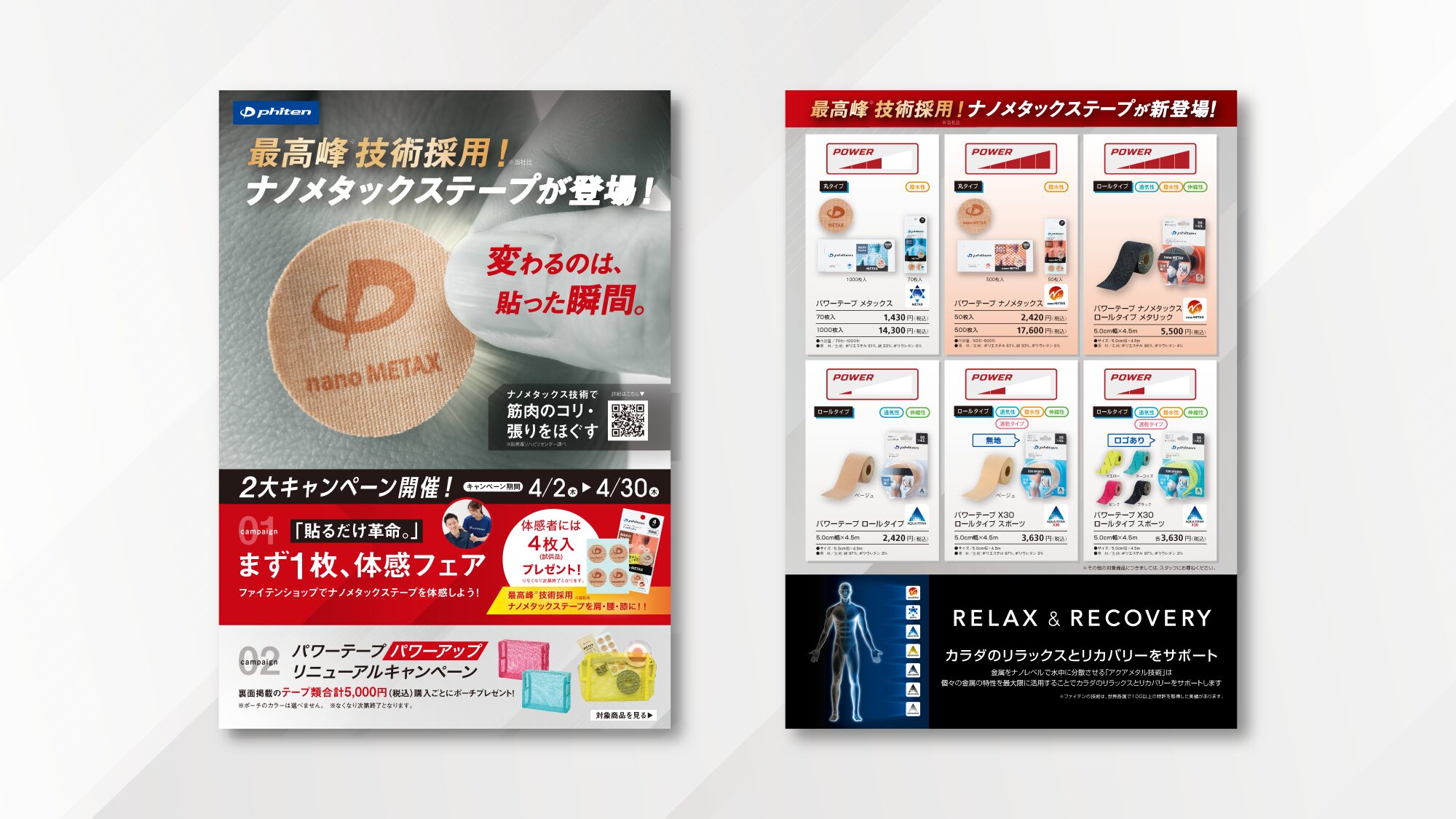 【チラシ・リーフレット】テープの販促用A4チラシ・デザイン制作_ファイテン株式会社様