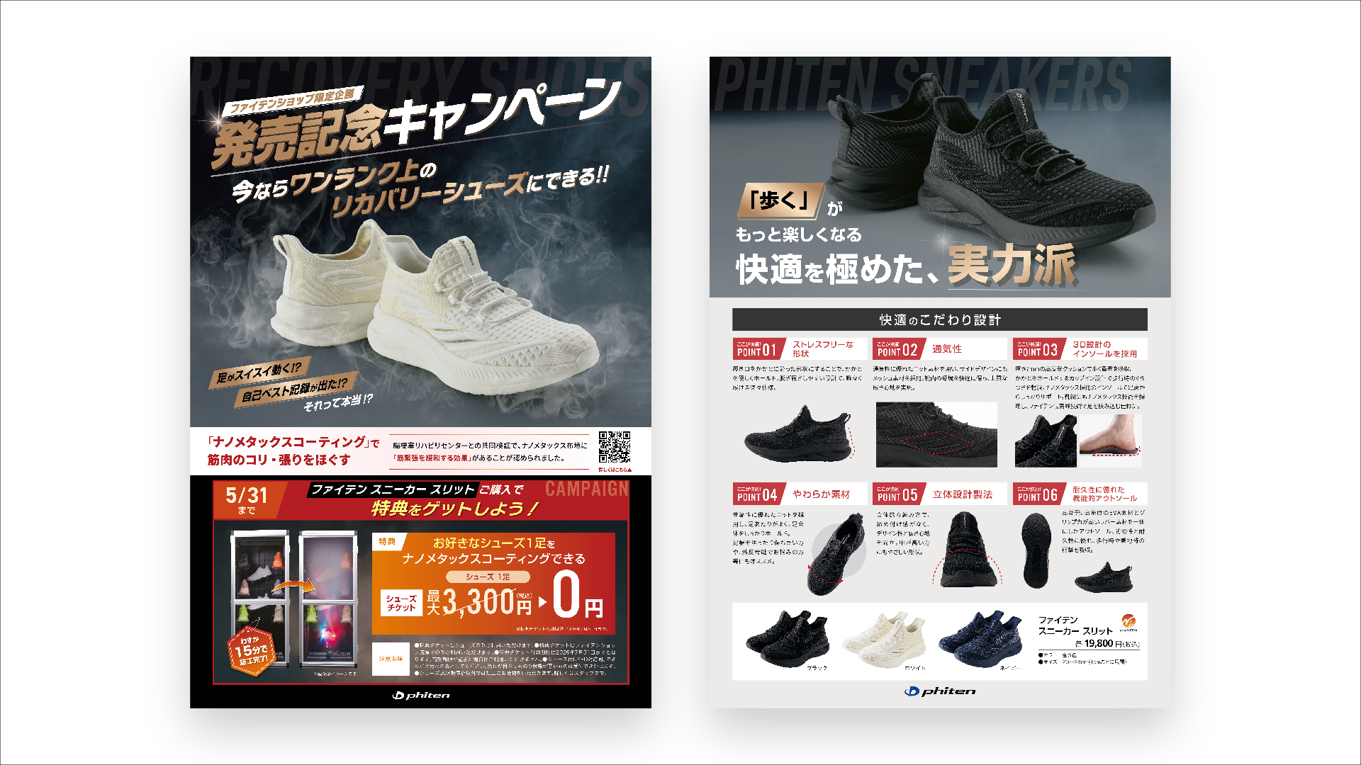 【チラシ・リーフレット】新商品シューズのA4チラシ・デザイン制作_ファイテン株式会社様