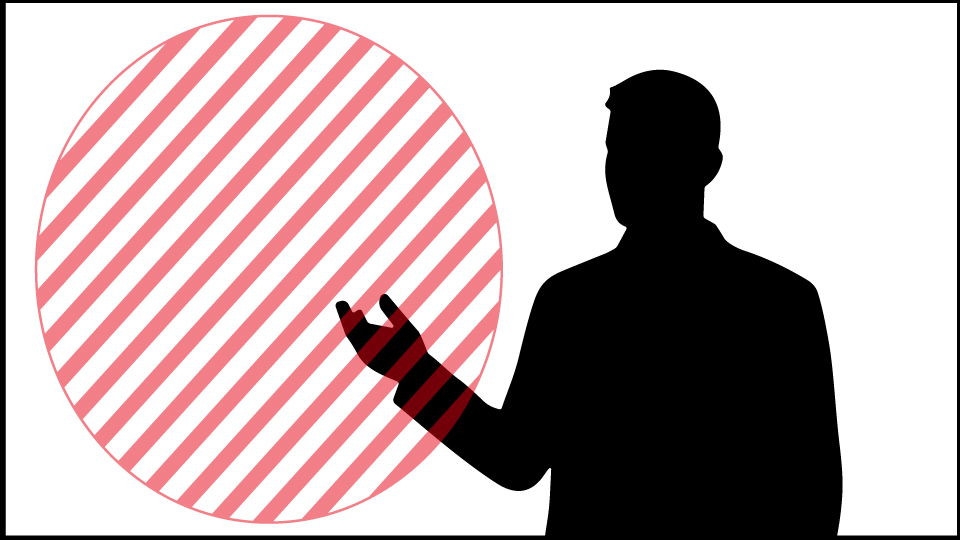 話している方向の空間を空けることで、話している相手を感じさせることができるので、ナチュラルになります。