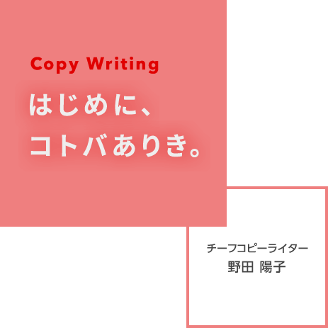 広告には、紙、Web、映像など、様々な媒体がありますが、全てに共通しているのは「絵」と「コトバ」で伝えているということです。JPCはその中でも“まずはコトバありき”という考え方で、コピーを重視した広告づくりを行っています。