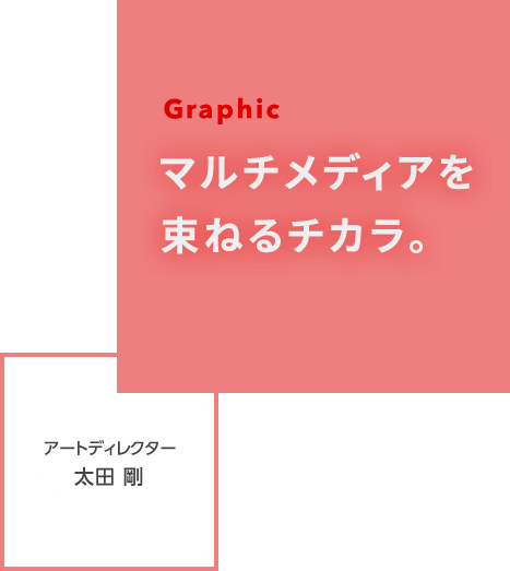 「キービジュアル」は、マルチメディアを束ねるフォーマットデザインとして各媒体に落とし込まれますが、グラフィックデザイナー自身もアートディレクターとして数多くのクリエイターやクライアントを束ねる役割を担い、メディアを超えて表現を操る必要があります。そのためグラフィックデザイナーには、コミュニケーション能力、そしてディレクション能力が欠かせません。例えば、必要な写真のイメージを、絵コンテによってクライアントやカメラマン、その他のクリエイターに伝えたり、手描きのサムネイルで共通認識を促したり、プロモーションの方向を目に見えるカタチで示すためには「コミュニケーション能力」「ディレクション能力」が不可欠なんです。今後も、ますますグラフィックのプレゼンスは高まっていくと思われますが、常に右脳的クリエイティブ能力と、左脳的操作能力、この両方を駆使できる、一流のアートディレクター集団でありたいと考えています。