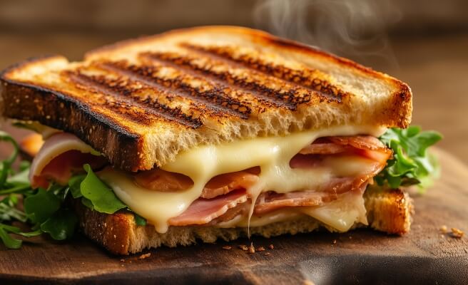 とろけるチーズとジューシーなハムをこんがり焼き上げ。軽⾷にぴったりです。