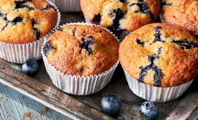しっとり⽢酸っぱいブルーベリー⼊りの焼き菓⼦。おやつや朝⾷にも◎。