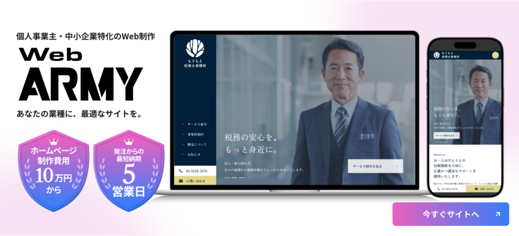 引き続き、低価格・スピーディなホームページ制作のご依頼は「Web ARMY」にお任せください。