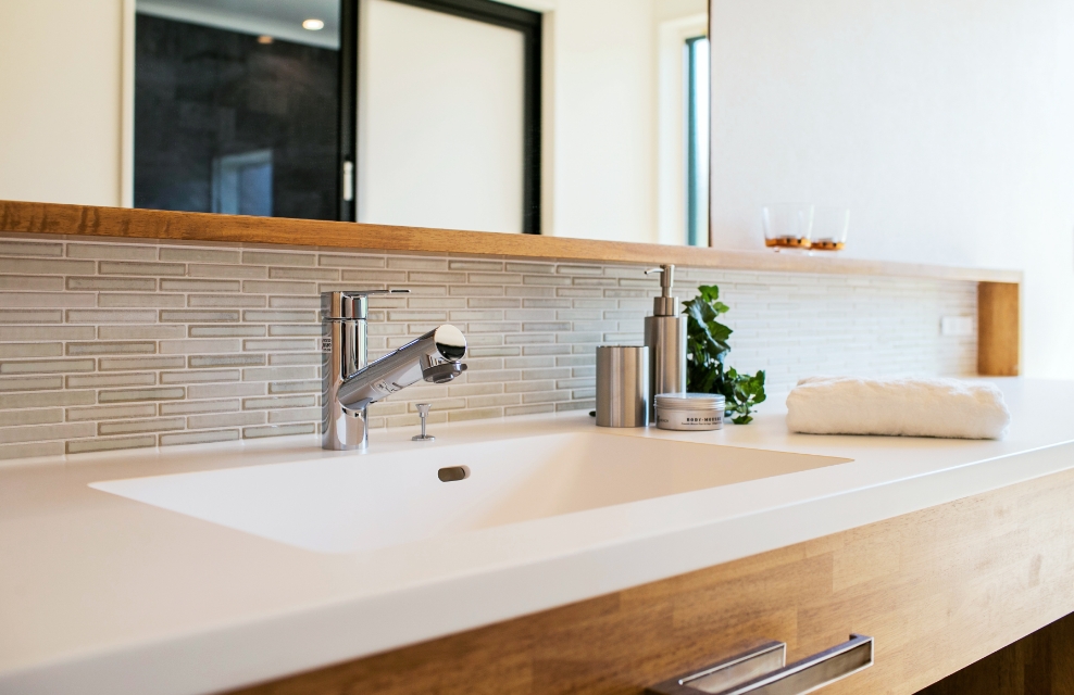 洗面室→脱衣所→キッチンが一直線でつながる動線で、日々の家事をスムーズに。