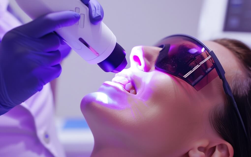 - オフィスホワイトニングで使用する専用のLEDライトは、歯にやさしく、効率的にホワイトニング効果を高めます。しみにくく、痛みに配慮された設計です。