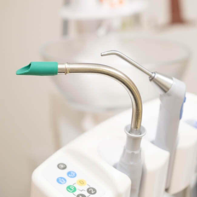治療に治療中に飛散する粉塵や唾液をすばやく吸引し、院内の空気を清潔に保ちます。