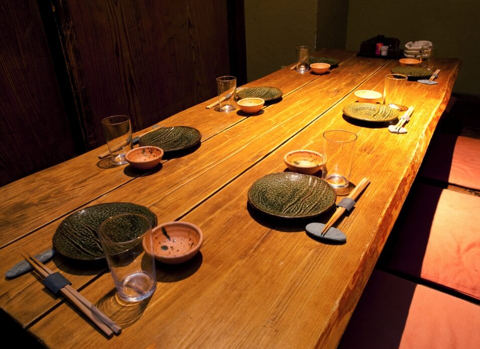 足をのばしてくつろげる掘りごたつのお席は、ご家族やご友人とのお集まりにぴったり。