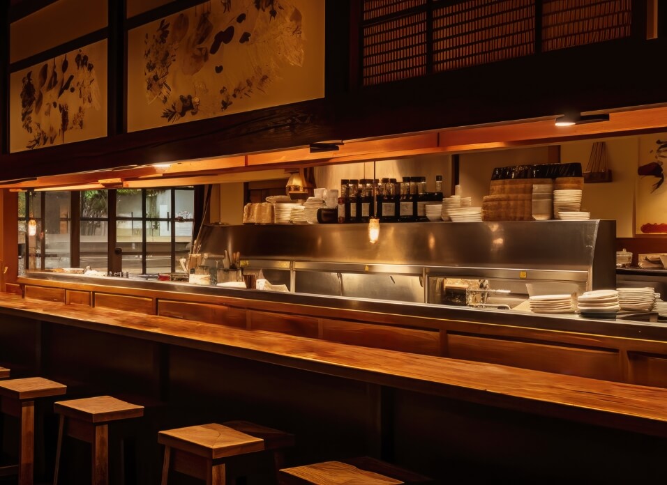 目の前で料理が仕上がる様子を眺めながら、お一人でも気軽にお酒と肴を楽しめるカウンター席。