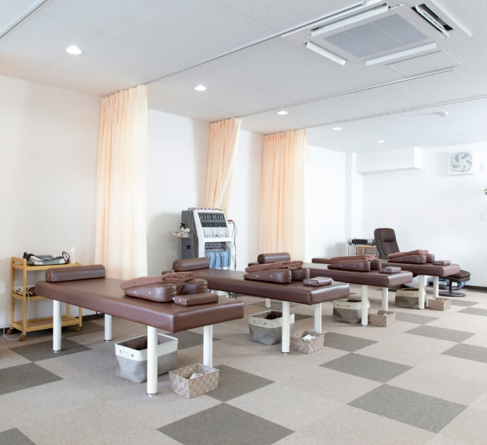 身体への負担を軽減する施術ベッドや、干渉波・低周波など症状に応じた機器を導入しています。安全性・清潔感に配慮し、定期的なメンテナンスも行っています。