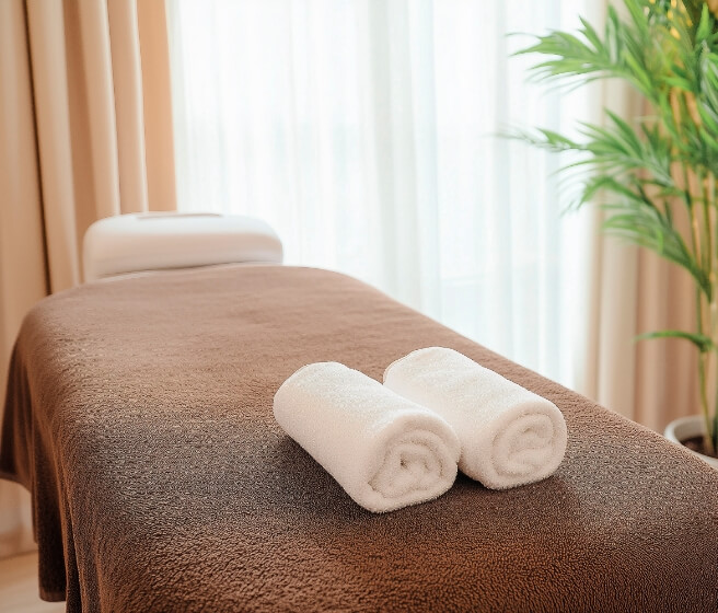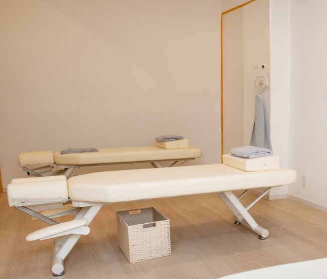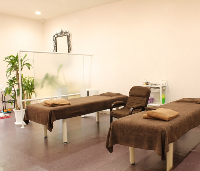 仕切りのある落ち着いた空間で、リラックスして施術を受けていただけます。プライバシーに配慮した設計で、初めての方でも安心です。