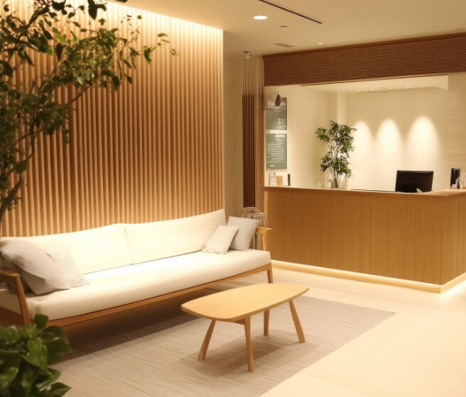 木目調のやさしい内装で、落ち着いてお過ごしいただける空間です。雑誌・ウォーターサーバーなども設置しています。
