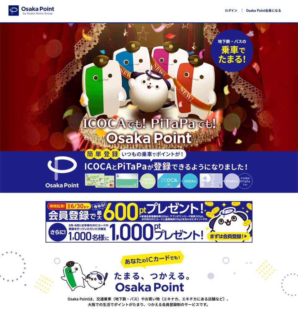 大阪メトロ様(大阪市高速電気軌道株式会社様)よりご依頼をいただき、会員登録制サービス「Osaka Point」の紹介ランディングページを作成しました。
